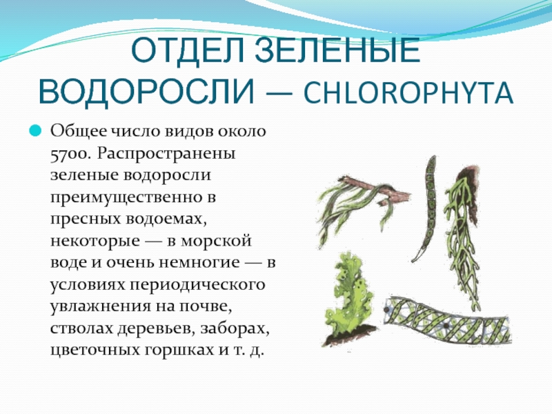 Слайд 16ОТДЕЛ ЗЕЛЕНЫЕ ВОДОРОСЛИ — CHLOROPHYTA
