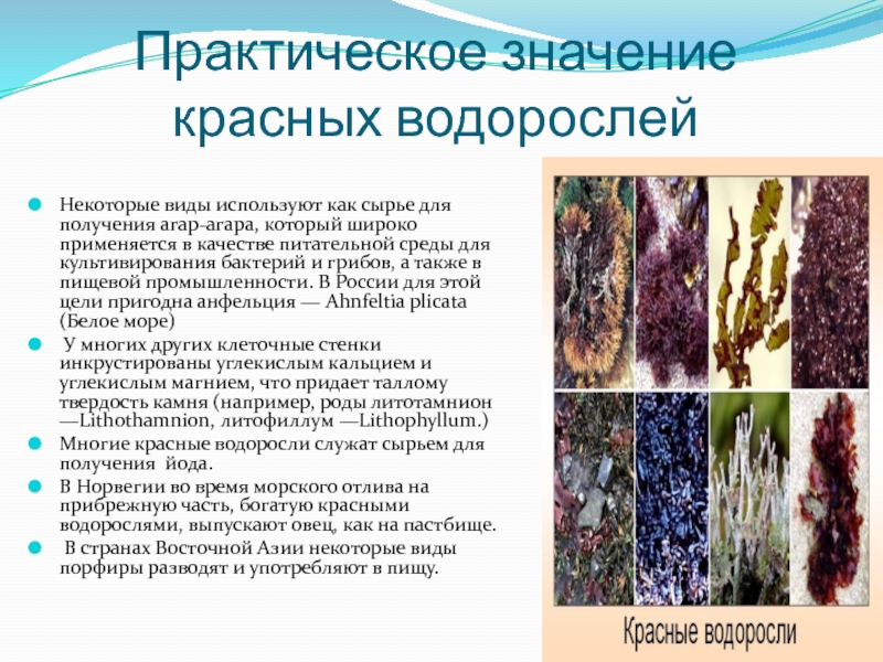 который широко применяется в качестве питательной среды для культивирования бактерий и грибов, а также в пищевой промышленности. В России для этой цели пригодна анфельция — Ahnfeltia plicata (Белое море)