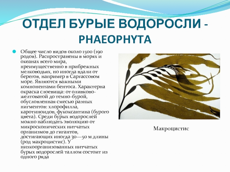 Слайд 8ОТДЕЛ БУРЫЕ ВОДОРОСЛИ - PHAEOPHYTA