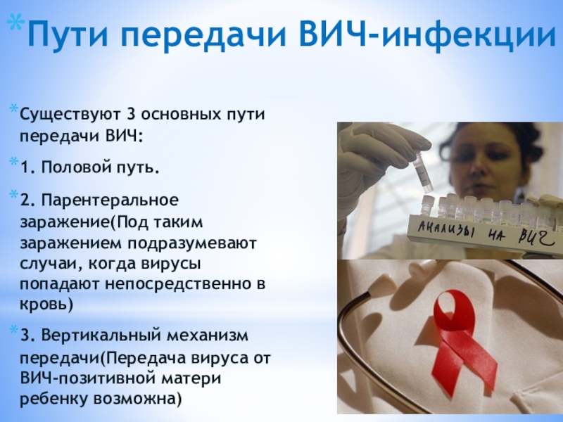 3. Вертикальный механизм передачи(Передача вируса от ВИЧ-позитивной матери ребенку возможна)