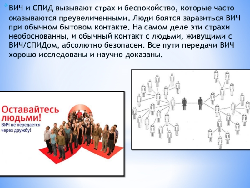 Слайд 17ВИЧ и СПИД вызывают страх и беспокойство, которые часто оказываются преувеличенными.