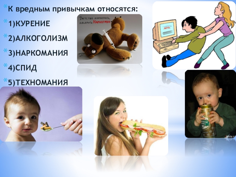 Слайд 4Здоровый образ жизни предполагает отказ от вредных привычек – пристрастия к