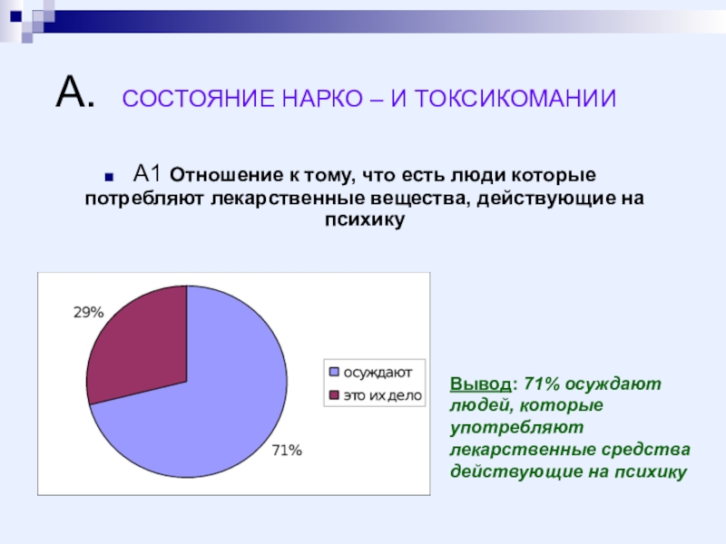 Вывод: 71% осуждают людей, которые употребляют лекарственные средства действующие на психику