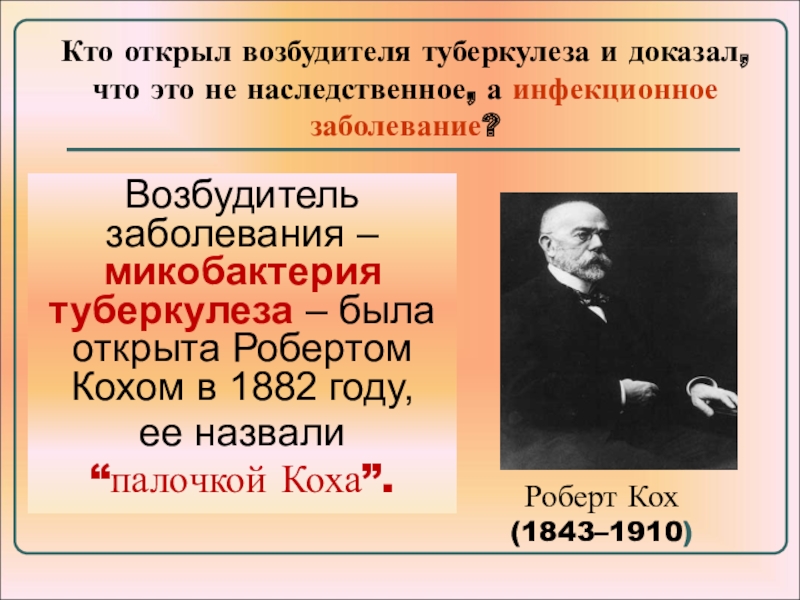 Кто открыл возбудителя туберкулеза и доказал, что это не наследственное, а инфекционное заболевание?