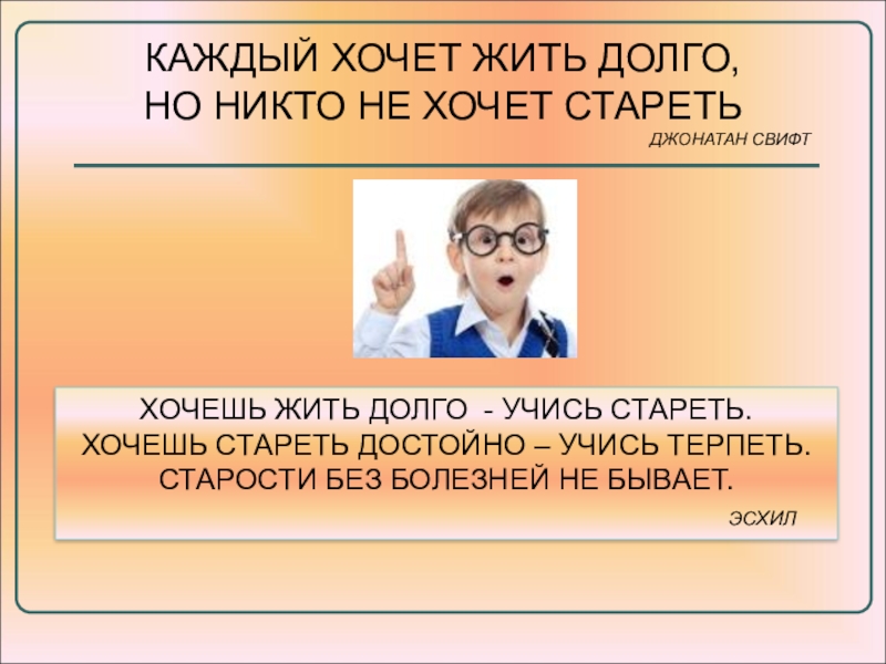 ХОЧЕШЬ ЖИТЬ ДОЛГО - УЧИСЬ СТАРЕТЬ.