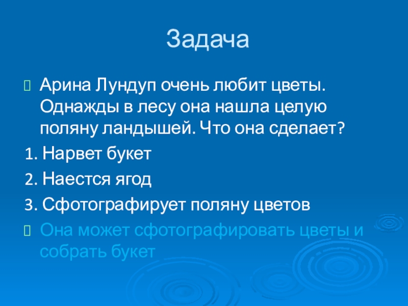 Арина Лундуп очень любит цветы. Однажды в лесу она нашла