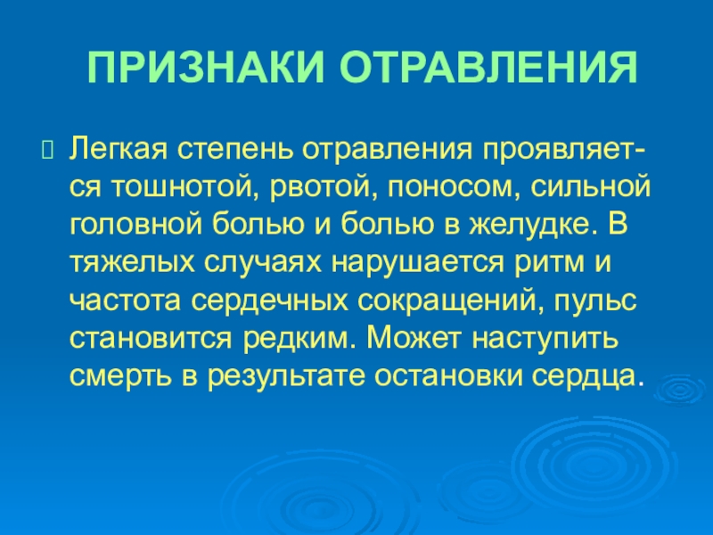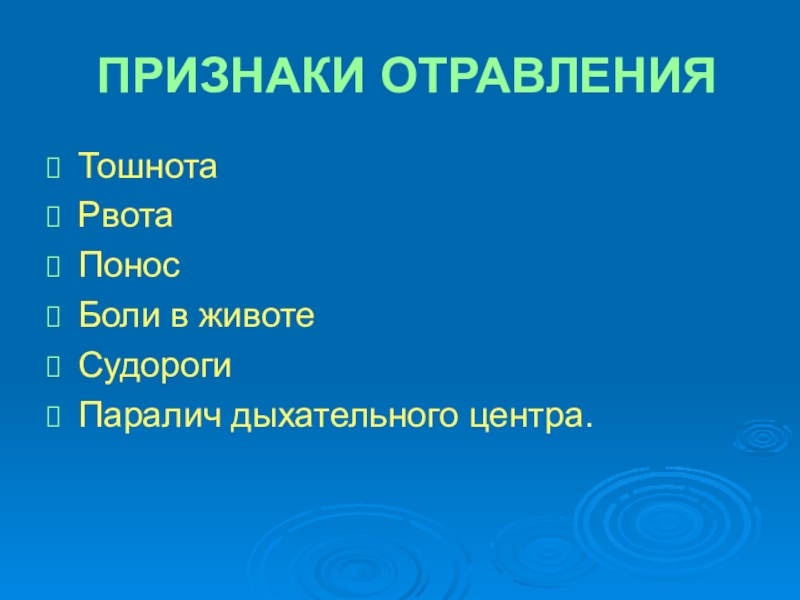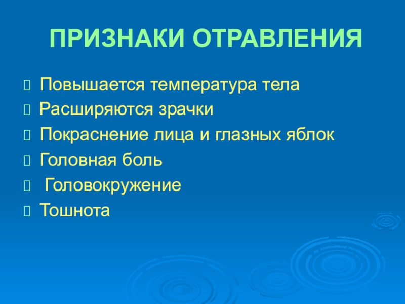 Слайд 21ПРИЗНАКИ ОТРАВЛЕНИЯ