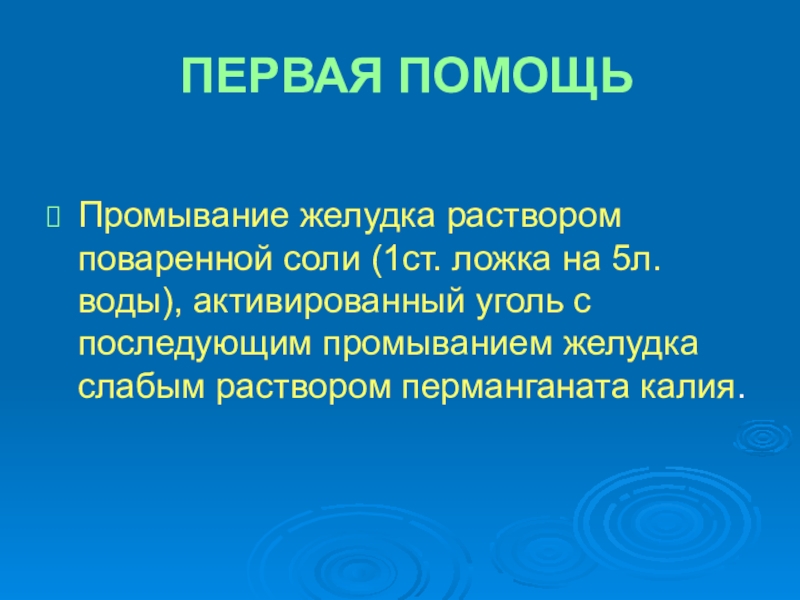 Промывание желудка раствором поваренной соли (1ст. ложка на 5л. воды),