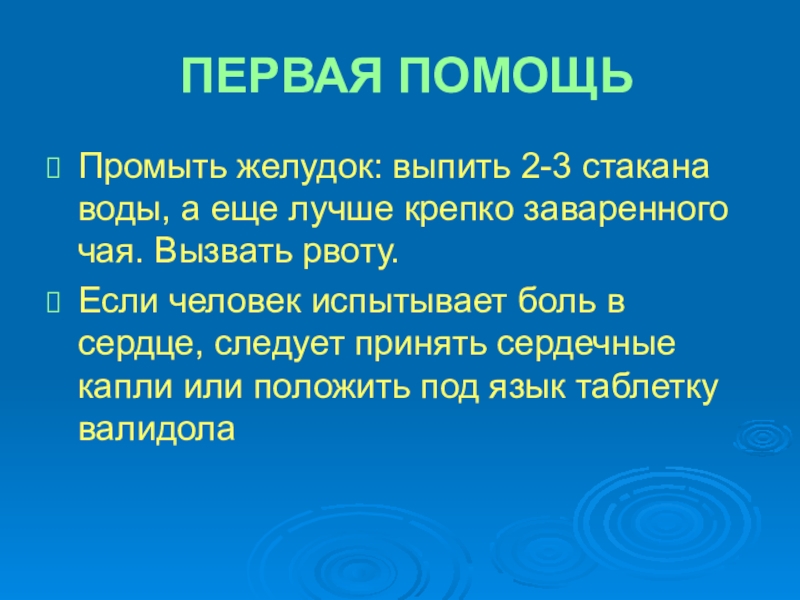Знать симптомы и первые признаки отравления, приемы оказания первой помощи.