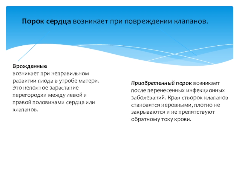 Приобретенный порок возникает после перенесенных инфекционных заболеваний. Края створок клапанов становятся неровными, плотно не закрываются и не препятствуют обратному току крови.