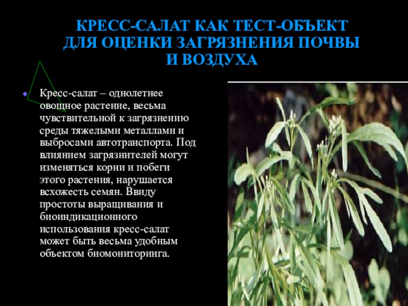 Слайд 13КРЕСС-САЛАТ КАК ТЕСТ-ОБЪЕКТ ДЛЯ ОЦЕНКИ ЗАГРЯЗНЕНИЯ ПОЧВЫ И ВОЗДУХА