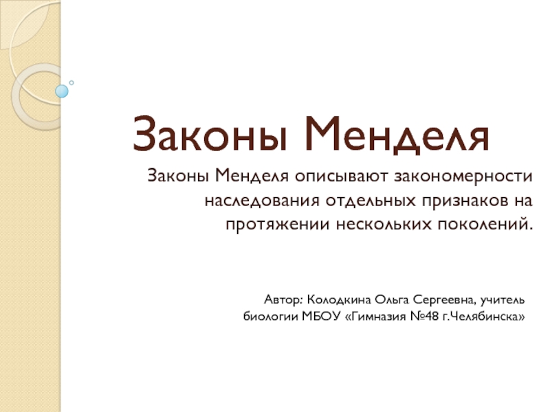 Автор: Колодкина Ольга Сергеевна, учитель биологии МБОУ «Гимназия №48 г.Челябинска»