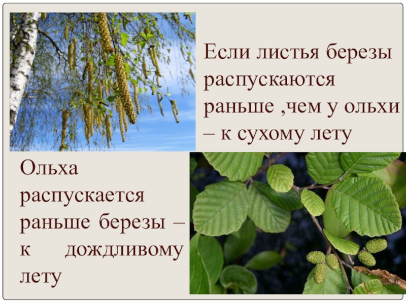 Ольха распускается раньше березы – к дождливому лету