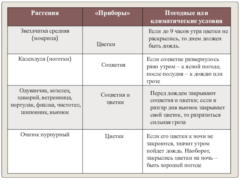 Если его цветки к ночи не закроются, значит утром пойдет дождь. Наоборот, закрылись цветки на ночь – быть хорошей погоде
