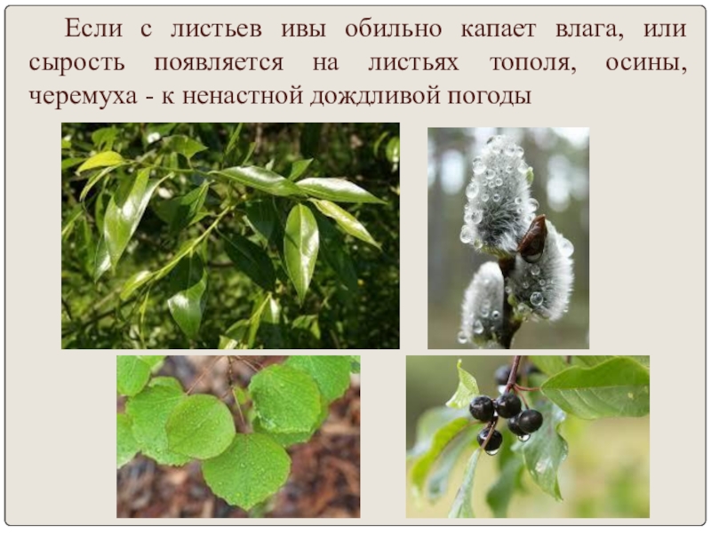 Перед теплой погодой листья закручиваются вниз, а за 15-20 часов до дождя раскручиваются или даже загибаются вверх