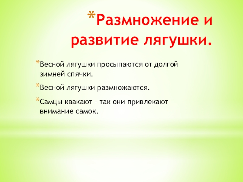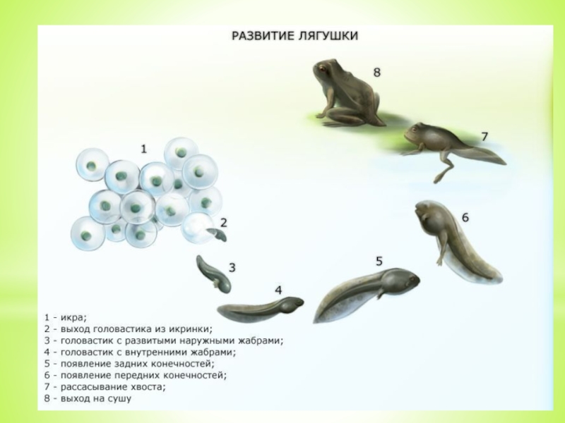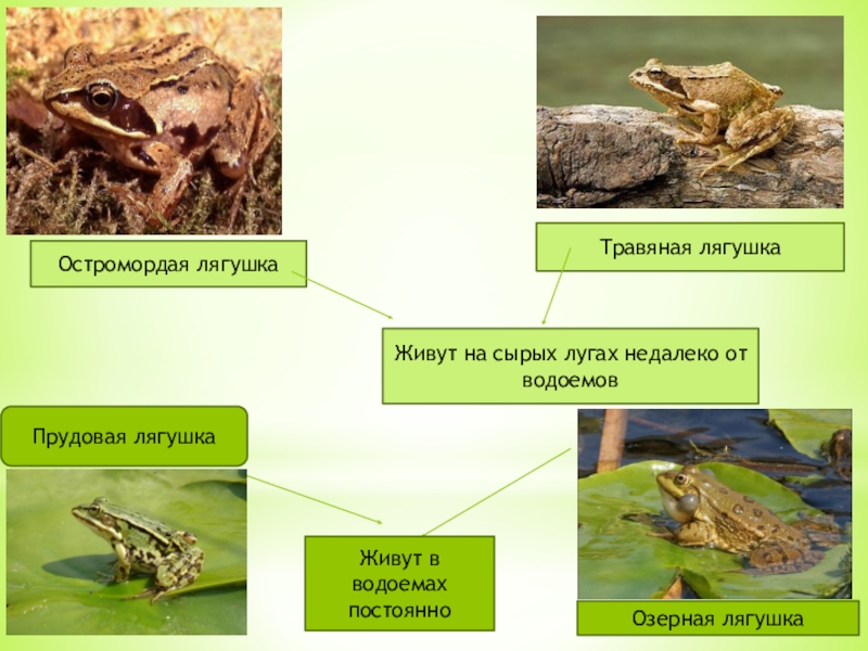 Глаза и ноздри расположены на верхней выпуклой части головы лягушки. Поэтому она может дышать воздухом и осматривать окрестности, сидя в воде.