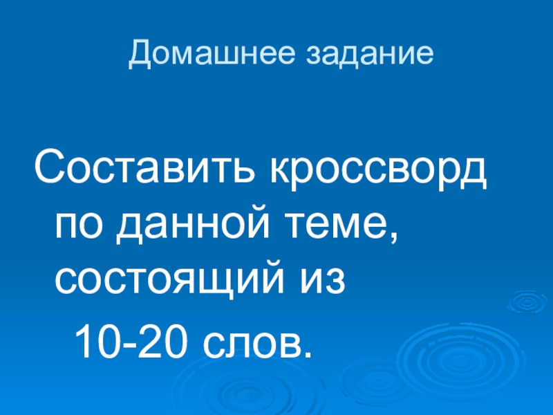 Домашнее заданиеСоставить кроссворд по данной теме, состоящий из  10-20 слов.