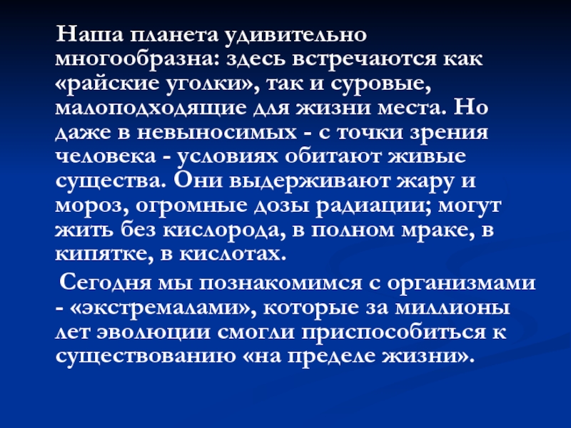 Презентация, доклад по биологии жизнь в экстремальных условиях