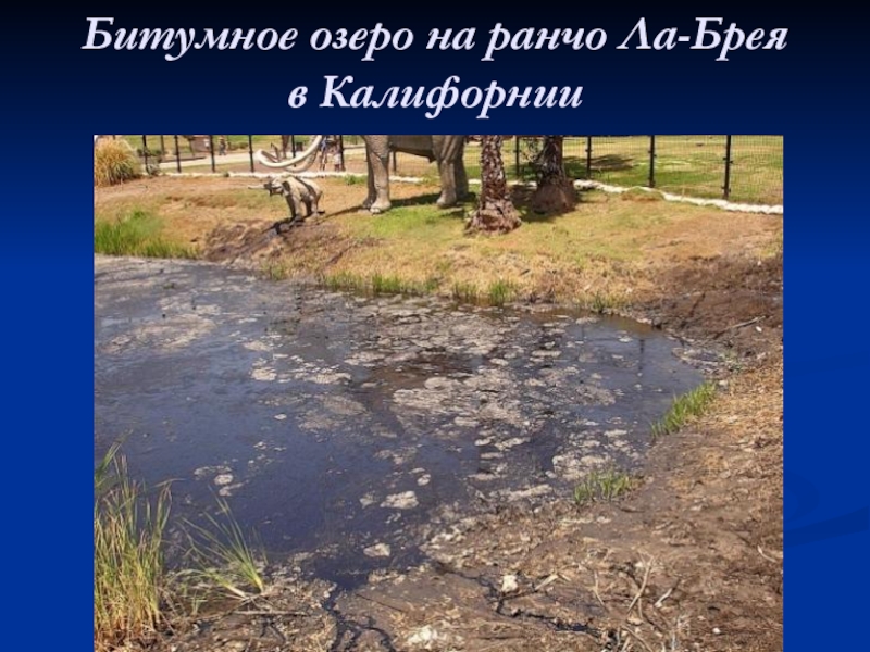 Слайд 25Битумное озеро на ранчо Ла-Брея в Калифорнии
