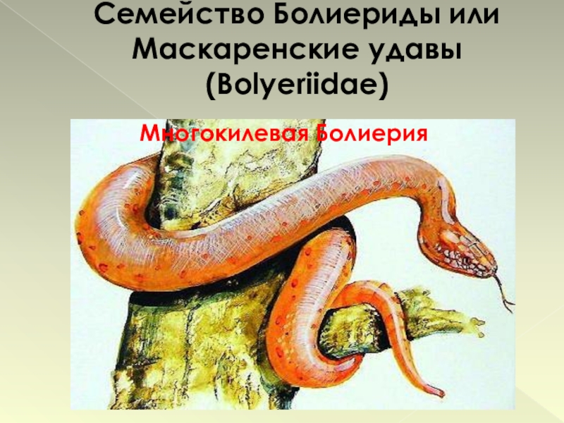 Слайд 15Семейство Болиериды или Маскаренские удавы (Bolyeriidae)