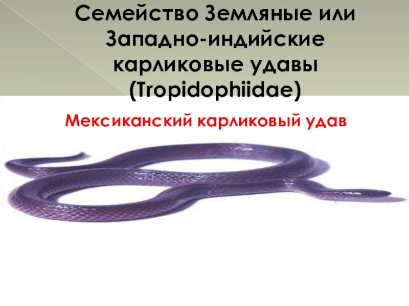 Слайд 33Семейство Земляные или Западно-индийские карликовые удавы (Tropidophiidae)