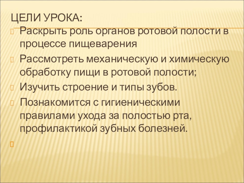 Познакомится с гигиеническими правилами ухода за полостью рта, профилактикой зубных болезней.