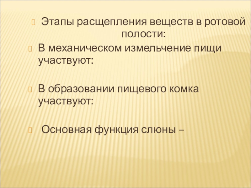 Слайд 37Этапы расщепления веществ в ротовой полости: