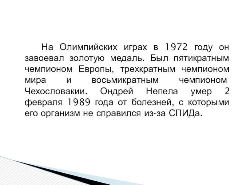 Слайд 7 На Олимпийских играх в 1972 году он завоевал золотую