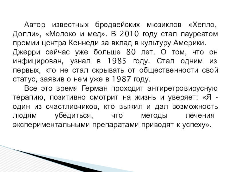 Слайд 13 Ему стало известно о том, что он болен СПИДом
