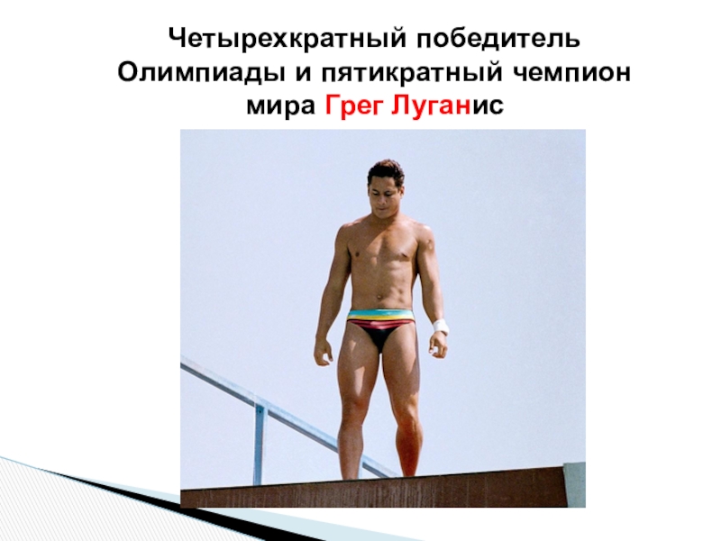 Слайд 30Четырехкратный победитель Олимпиады и пятикратный чемпион мира Грег Луганис