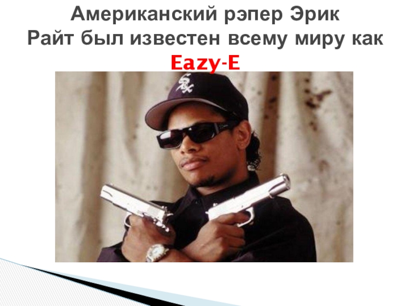Слайд 10Американский рэпер Эрик Райт был известен всему миру как Eazy-E