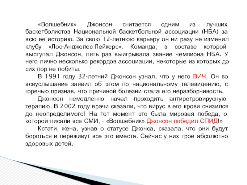 Слайд 28Баскетболист НБА Ирвин «Мэджик» Джонсон