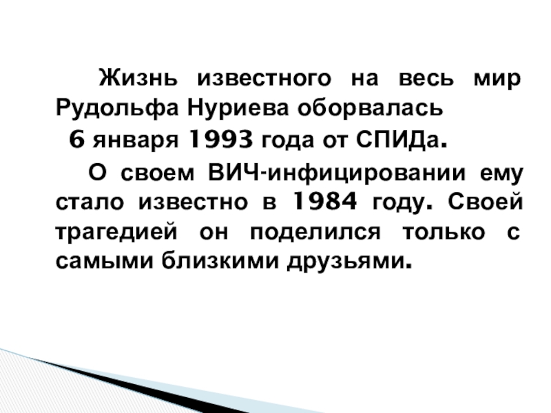 Слайд 5 Жизнь известного на весь мир Рудольфа Нуриева оборвалась