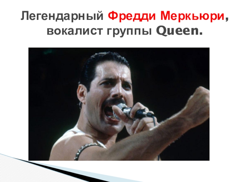 Слайд 2Легендарный Фредди Меркьюри, вокалист группы Queen.