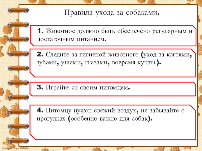 Слайд 8Правила ухода за собаками.
