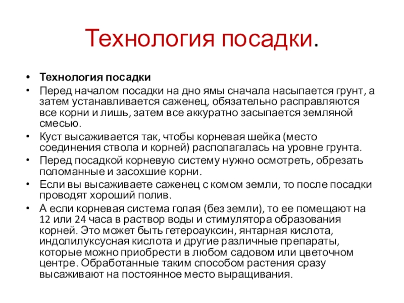 А если корневая система голая (без земли), то ее помещают на 12 или 24 часа в раствор воды и стимулятора образования корней. Это может быть гетероауксин, янтарная кислота, индолилуксусная кислота и другие различные препараты, которые можно приобрести в любом садовом или цветочном центре. Обработанные таким способом растения сразу высаживают на постоянное место выращивания.