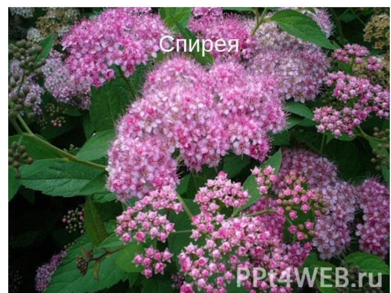 Слайд 3СПИРЕЯ (Spiraea) относится к декоративным кустарникам семейства розоцветных (Rosaceae). Высоко ценится