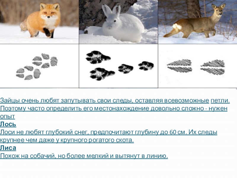 Слайд 7Зайцы очень любят запутывать свои следы, оставляя всевозможные петли. Поэтому часто