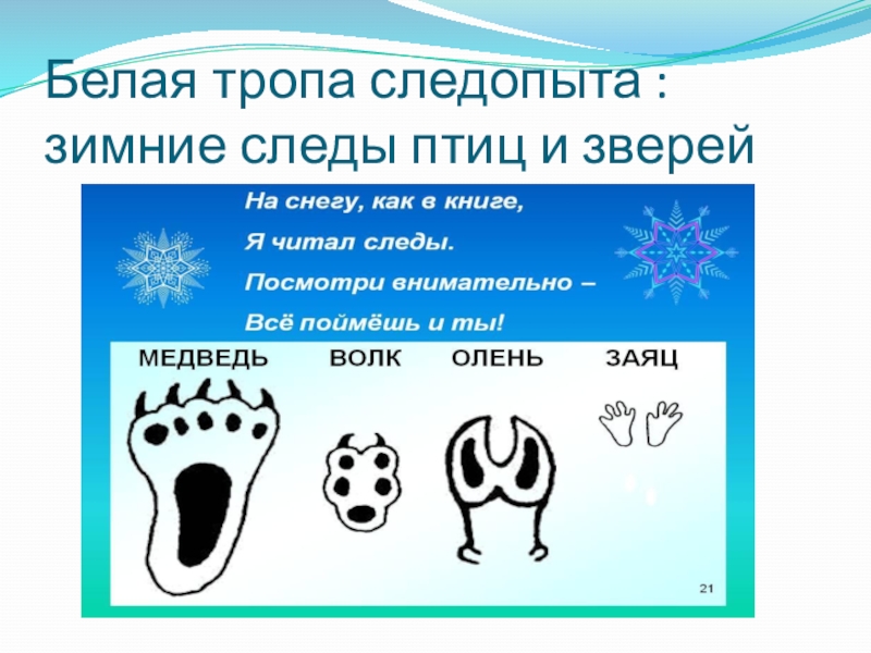 Слайд 3Белая тропа следопыта : зимние следы птиц и зверей