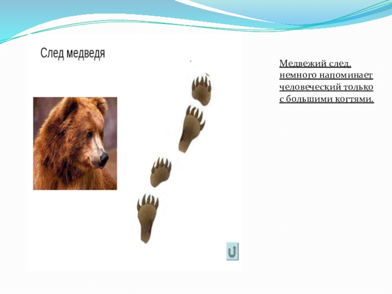 Слайд 5Медвежий след, немного напоминает человеческий только с большими когтями.