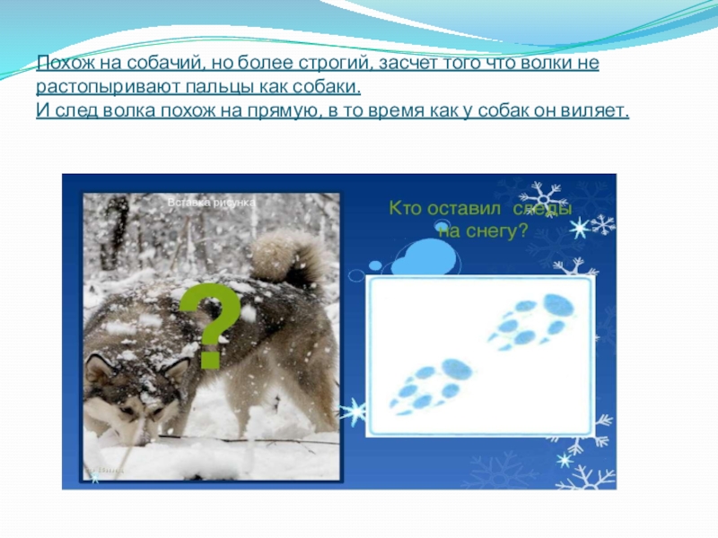 Слайд 6Похож на собачий, но более строгий, засчет того что волки не