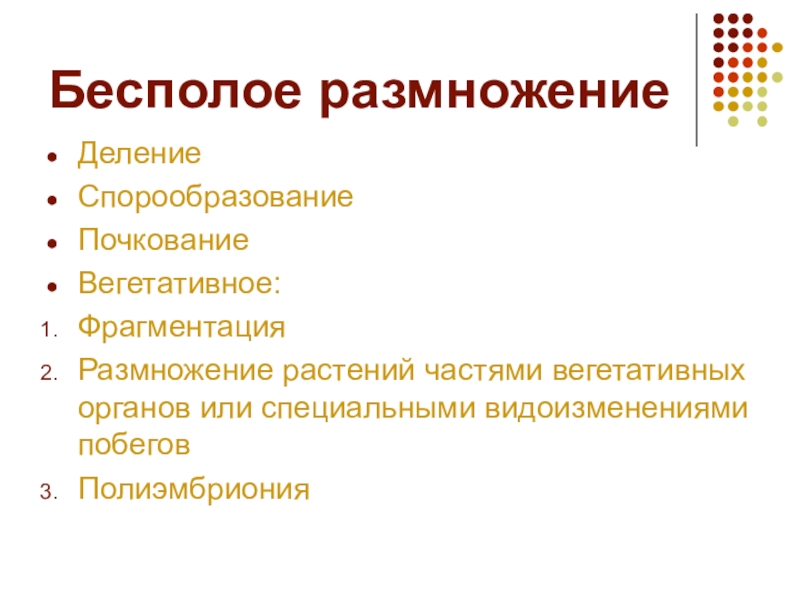 Форма бесполого размножения, характерная для многих групп растений, некоторых групп животных.