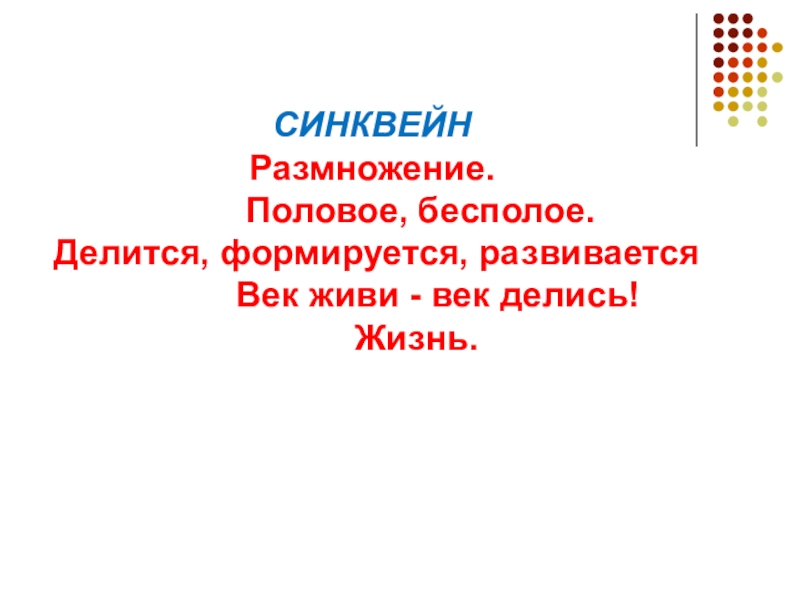 Слайд 3Это процесс, с помощью которого Жизнь умудряется обвести вокруг пальца Время».