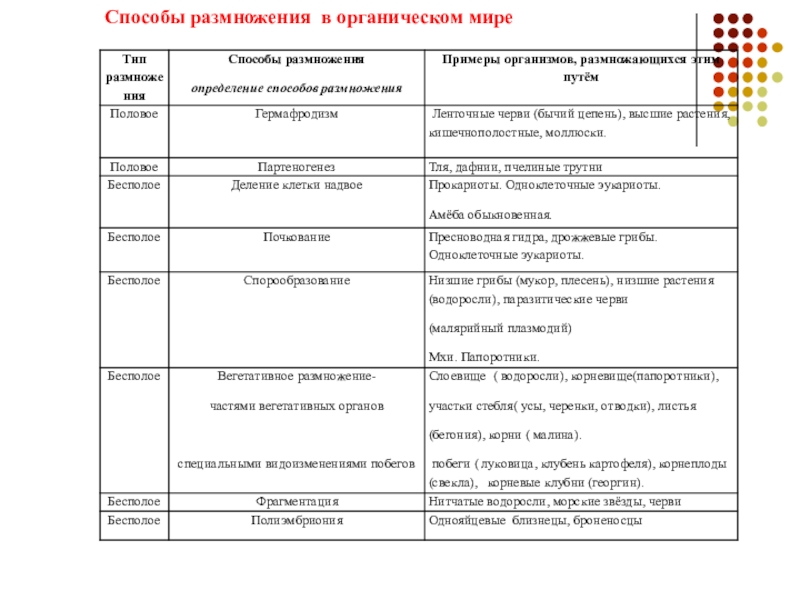 «ФОРМЫ РАЗМНОЖЕНИЯ ОРГАНИЗМОВ. БЕСПОЛОЕ РАЗМНОЖЕНИЕ»