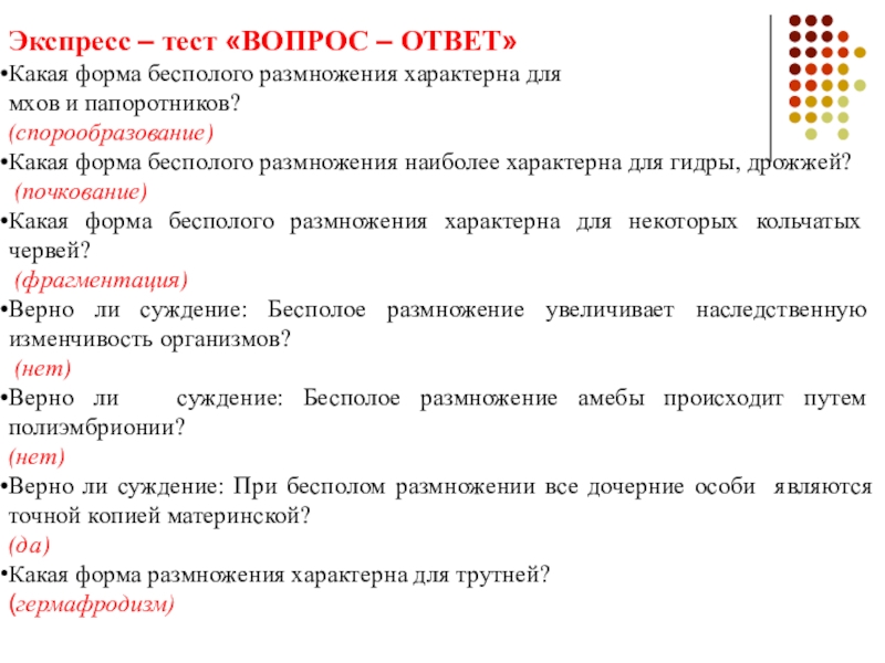 Слайд 19Экспресс – тест «ВОПРОС – ОТВЕТ»