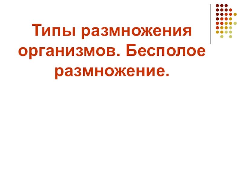 Слайд 4Типы размножения организмов. Бесполое размножение.