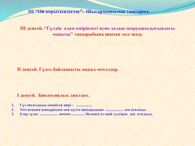 ІІ деңгей. Гүлге байланысты мақал-мәтелдер.