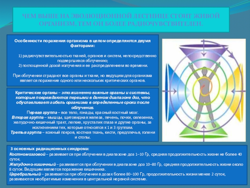 1) радиочувствительностью тканей, органов и систем, непосредственно подвергшихся облучению;