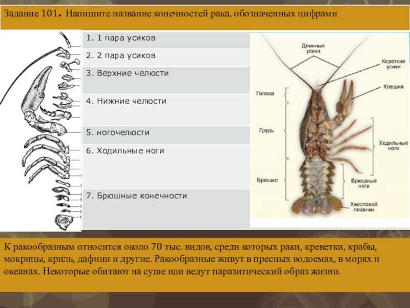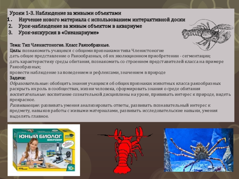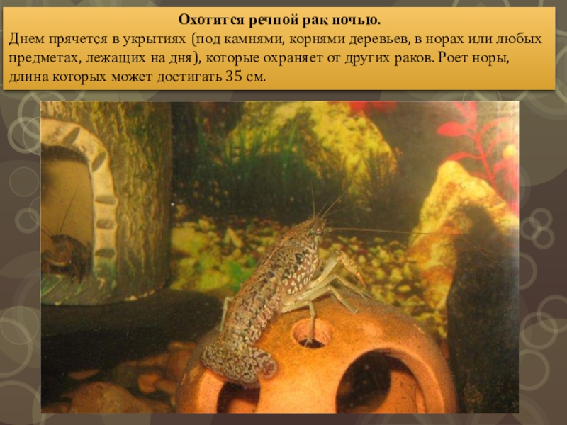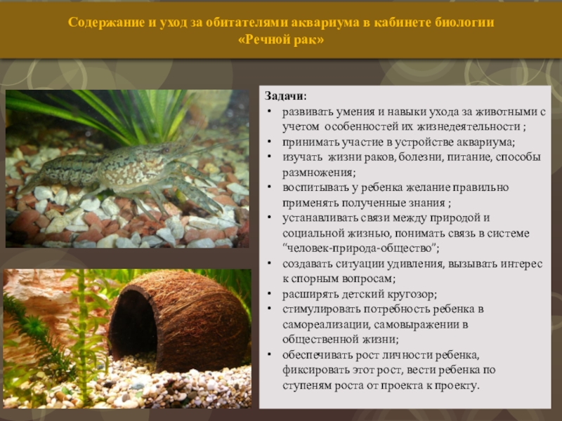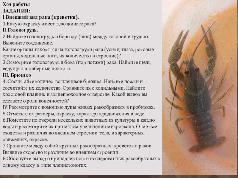 Познакомить с особенностями жизнедеятельности речного рака с органами движения, дыхания, питания, размножения, роста и развития.