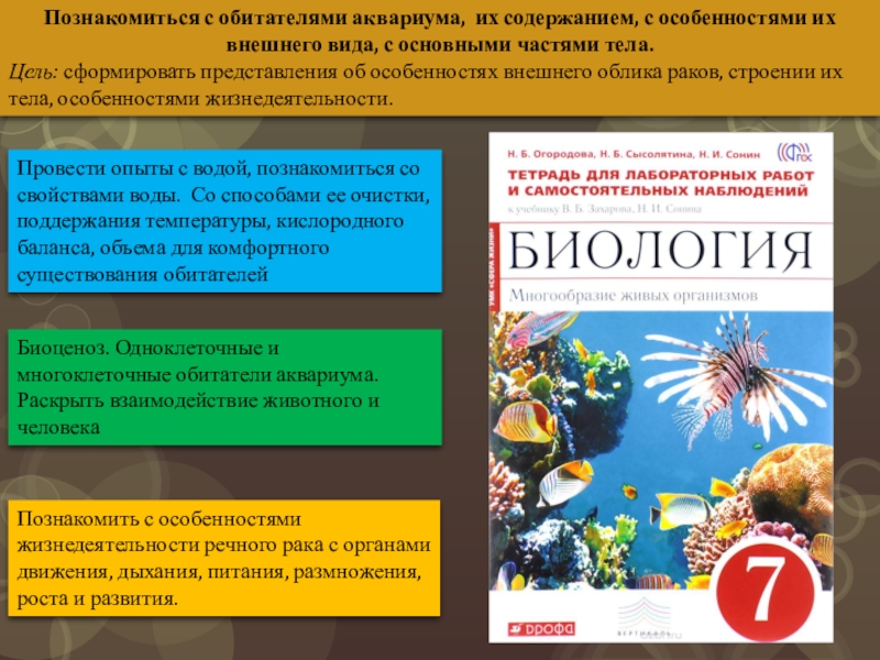 Биоценоз. Одноклеточные и многоклеточные обитатели аквариума. Раскрыть взаимодействие животного и человека